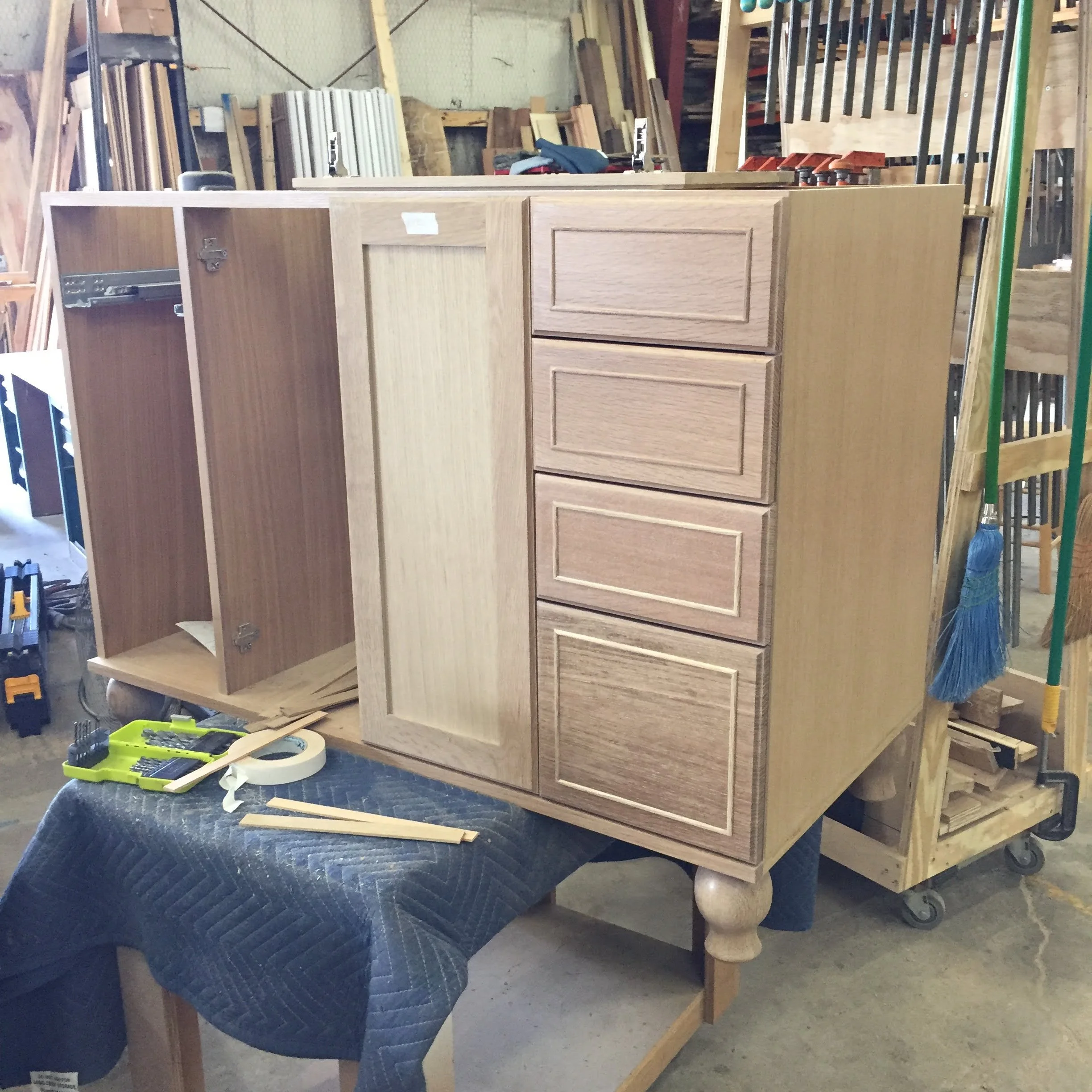 This homeowner was looking to renovate their bathroom. They discovered everywhere they looked the furniture was made of cheap composite. Unable to find something “real” she was able to reach out to me. Together we designed these pieces built from entirely solid White Oak. Through working together she was able to own something that will last generations.